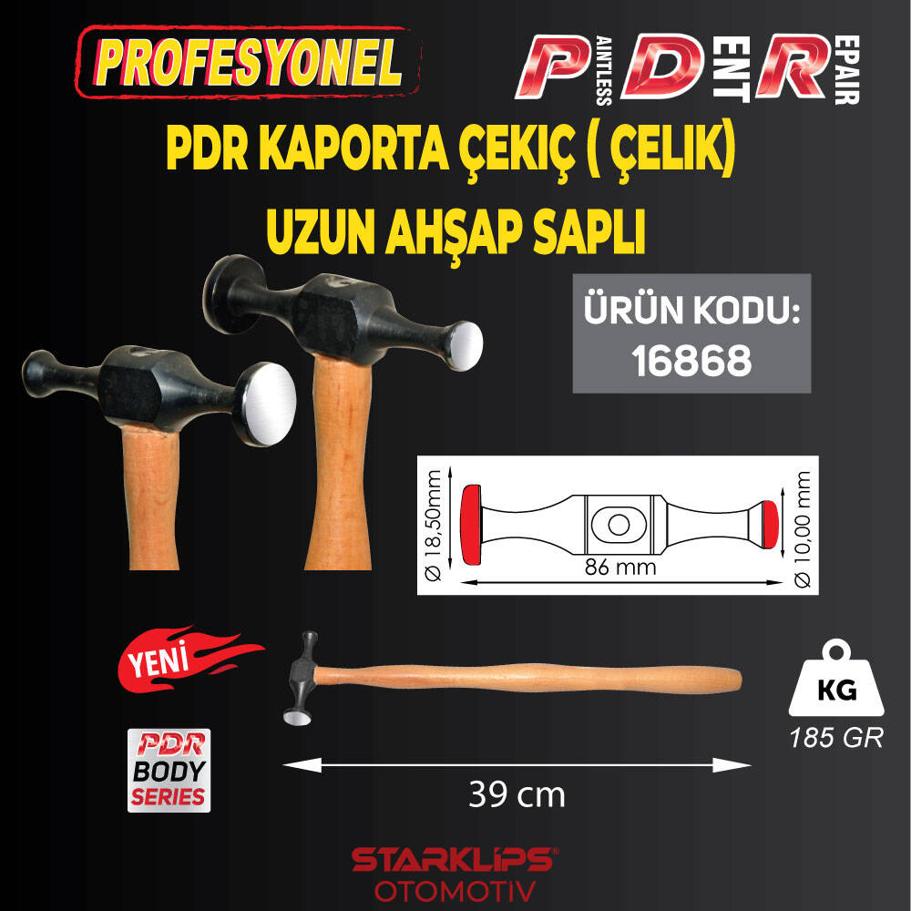 PDR Kaporta Çekiç ( Çelik) Uzun Ahşap Sap