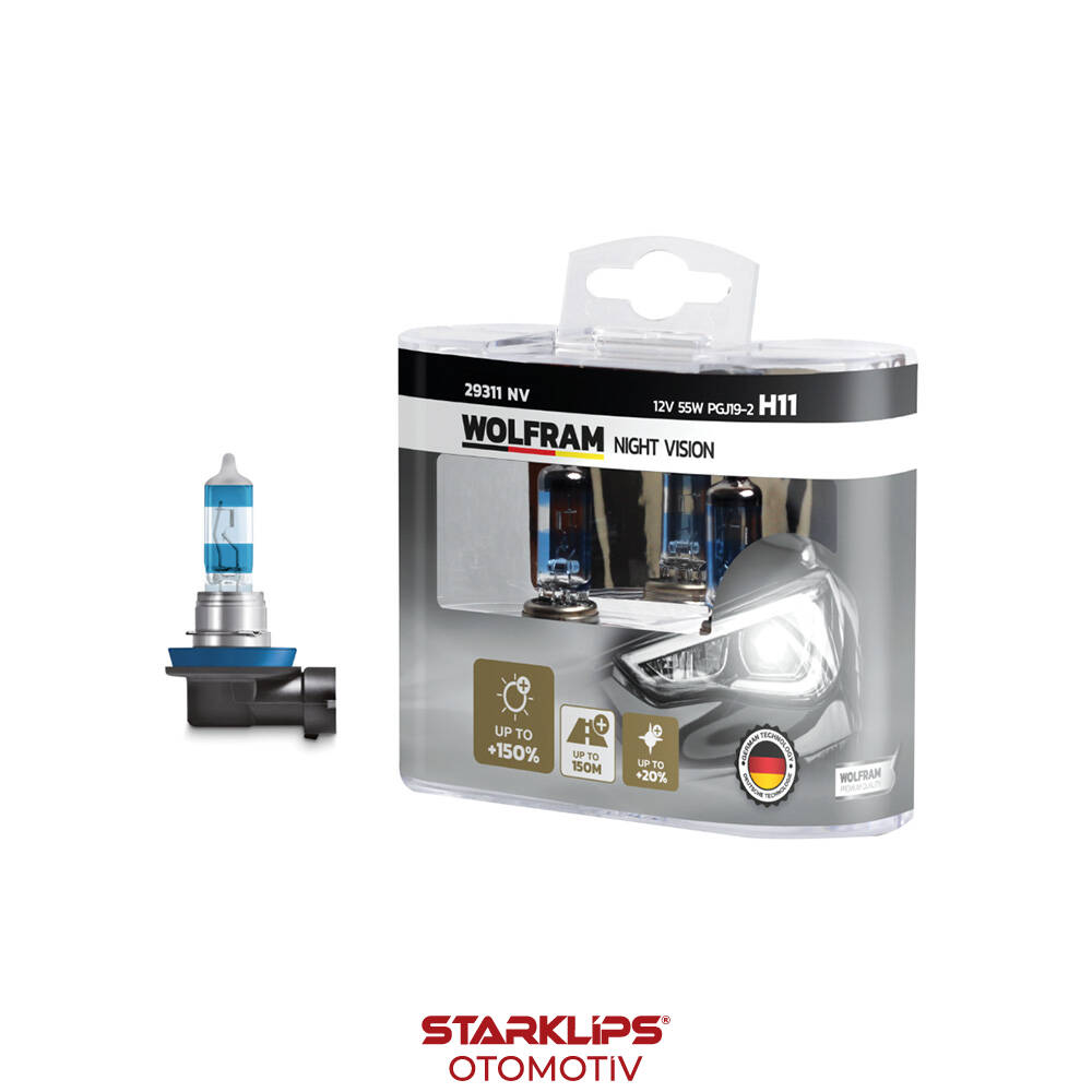 Set Ampul H11 12V 55W PX26d %150 Güçlü %20 Beyaz Işık Wolfram